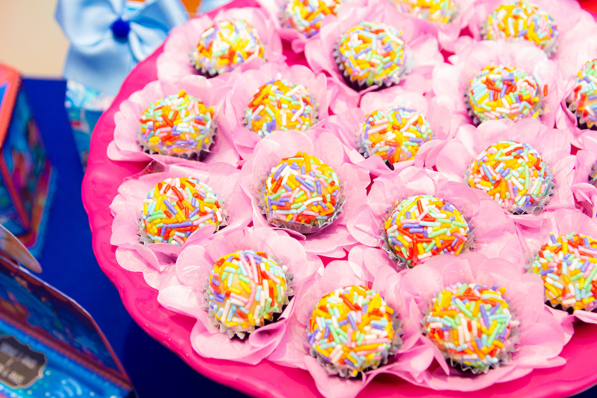 A festa estava linda demais! Muitos personalizados, docinhos maravilhosos e muita diversão!